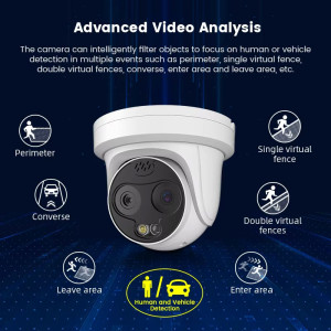 Assicura una sorveglianza ottimale con la telecamera a doppio obiettivo: termico + ottico, progettata per un rilevamento preciso e affidabile di persone e veicoli, sia di giorno che in completa oscurità.